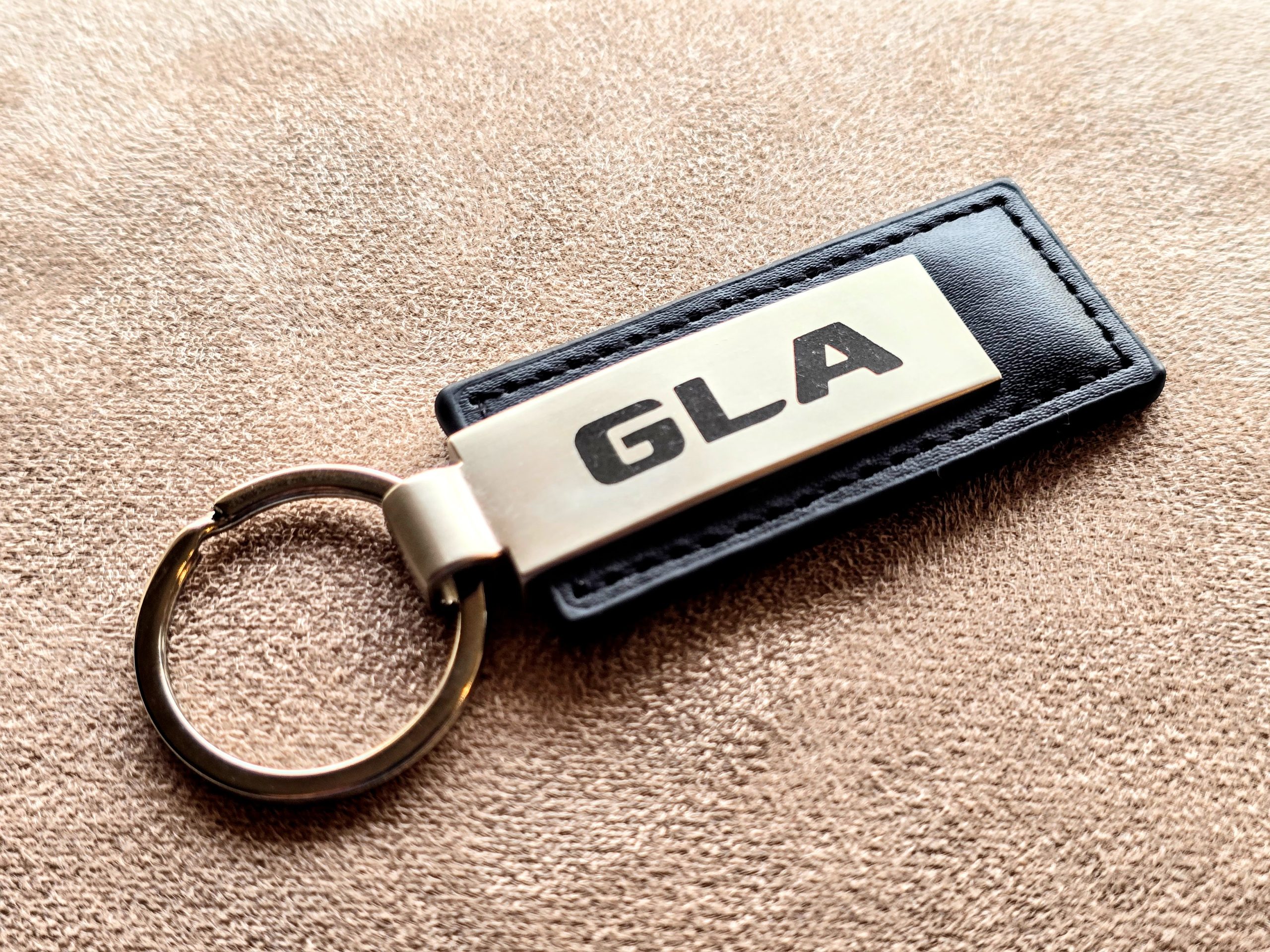 Метален ключодържател за ключовете на вашият GLA, изработен от неръждаема стомана и кожена част.
